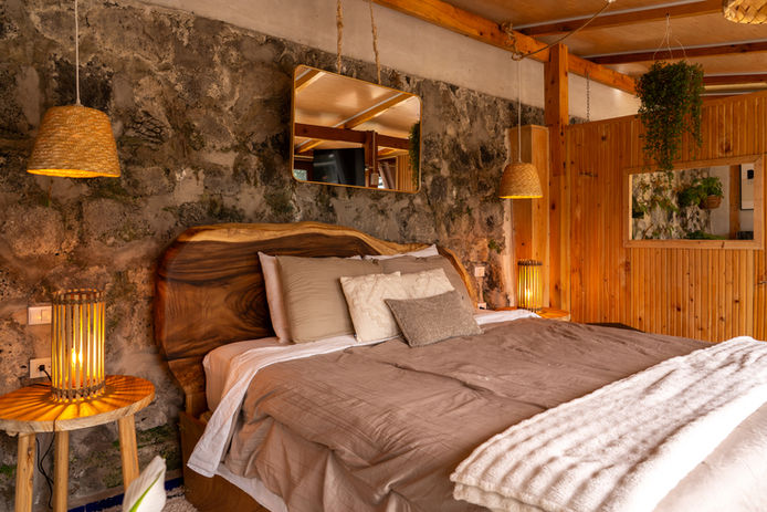 Pensada para dos personas, Los Naranjos Suite ofrece una experiencia elevada con vistas directas a un volcán inactivo, creando un escenario natural único. La suite cuenta con una tina perfecta para momentos de relajación, una atmósfera cálida y elementos decorativos que aportan carácter y armonía.